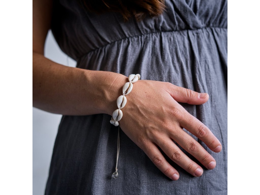 Tento ručně vyrobený náramek z mušliček je elegantním a symbolickým šperkem, který nese odkaz africké kultury. Mušličky byly v minulosti využívány jako platidlo a dodnes představují symbol hojnosti, ochrany a spojení s přírodou.