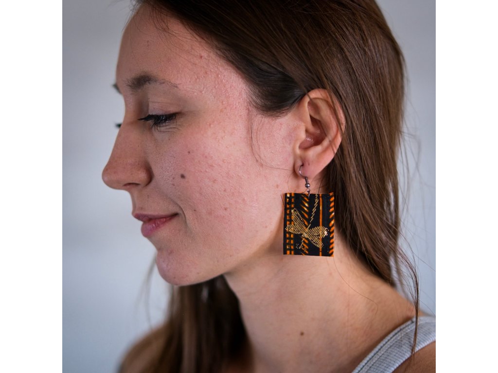 Tyto náušnice jsou vyrobeny ručně z kvalitní africké látky, která jim dodává unikátní vzhled a styl. Každý pár je jedinečný a skvěle doplní váš každodenní i slavnostní outfit. Ideální pro ty, kteří chtějí přidat do svého šatníku kousek s originálním a kulturním nádechem.