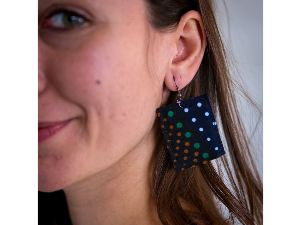 Tyto náušnice jsou vyrobeny ručně z kvalitní africké látky, která jim dodává unikátní vzhled a styl. Každý pár je jedinečný a skvěle doplní váš každodenní i slavnostní outfit. Ideální pro ty, kteří chtějí přidat do svého šatníku kousek s originálním a kulturním nádechem.