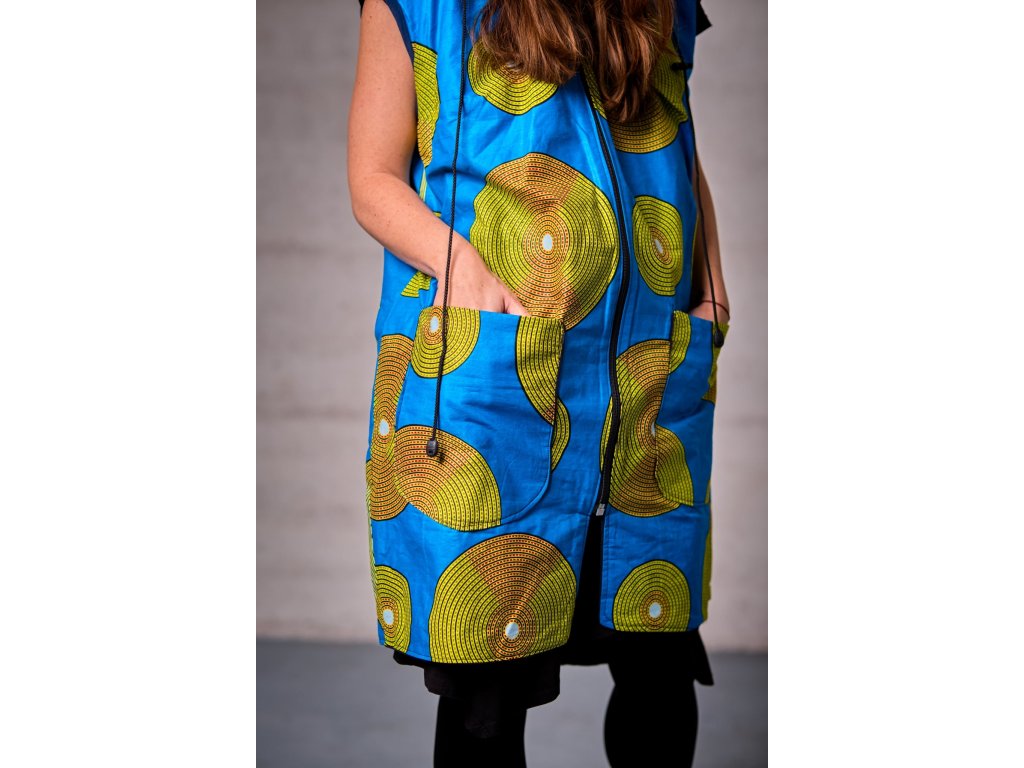 Vestička modrá se žlutými koly je stylový a praktický kousek vhodný pro jarní i podzimní období. Vyteplení fleesem zajišťuje pohodlí a teplo při každodenním nošení, zatímco barevný design s žlutými koly dodává vestě moderní a hravý vzhled.