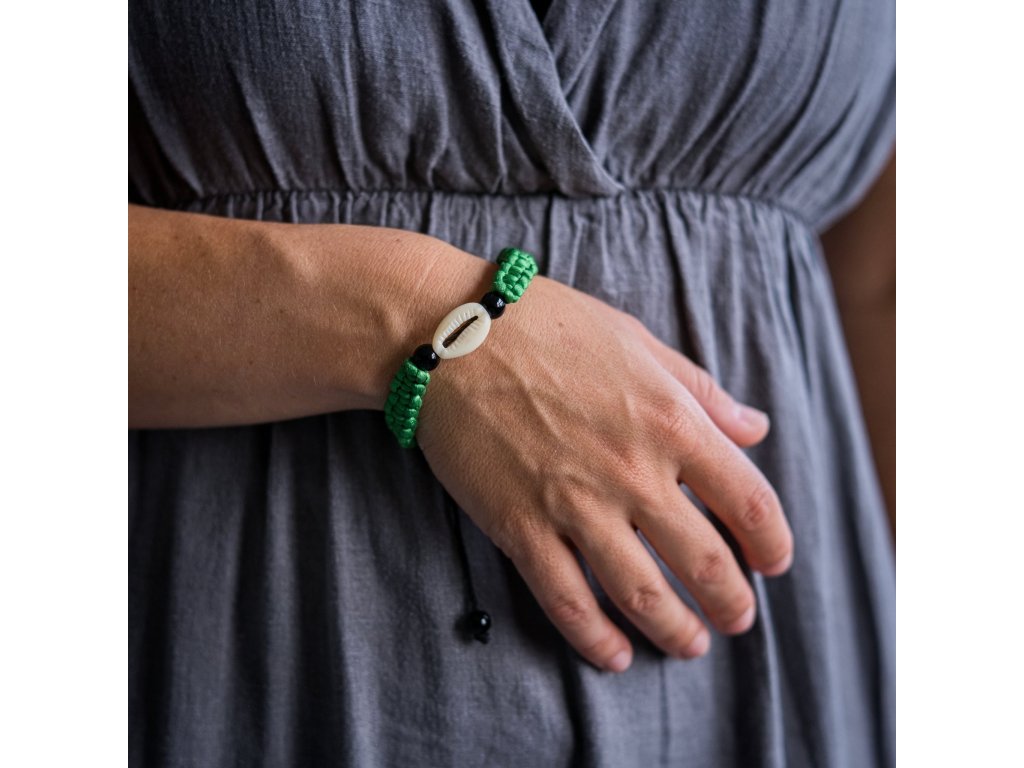 Ručně vyráběný náramek v zelené barvě je ozdoben autentickou mušličkou, která je symbolem spojení s přírodou, ochranou a duchovní silou. Zelená barva evokuje harmonii, klid a životní energii – ideální pro každého, kdo hledá rovnováhu a styl.